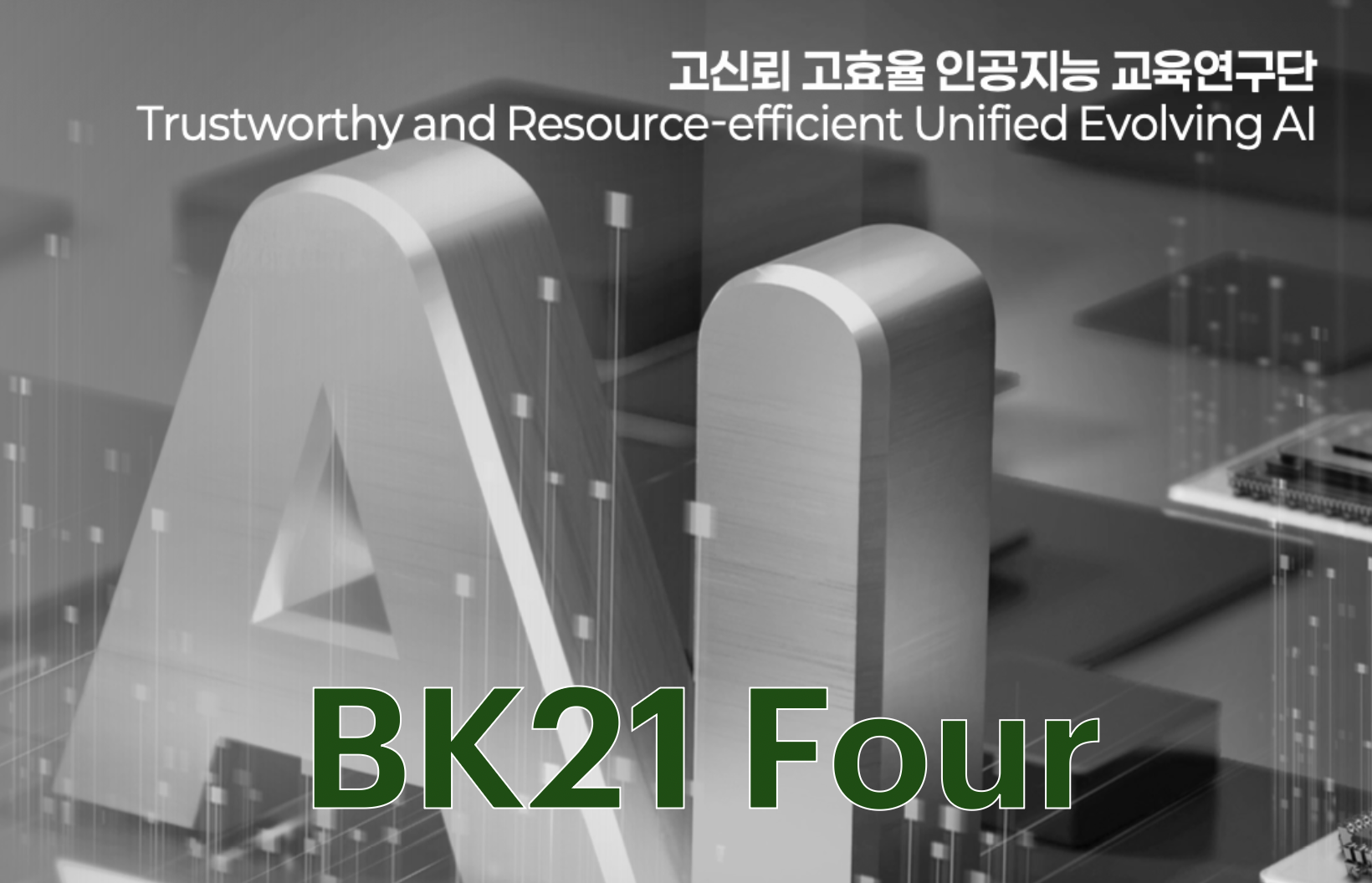 Our education and research group, “Trustworthy and Resource-efficient Unified Evolving AI (TRUE-AI),” was awarded the BK21 FOUR program. The program provides us with the total budget of 1.2B KRW through February 2027, and we are preparing to transition to the BK21 FIVE program thereafter.